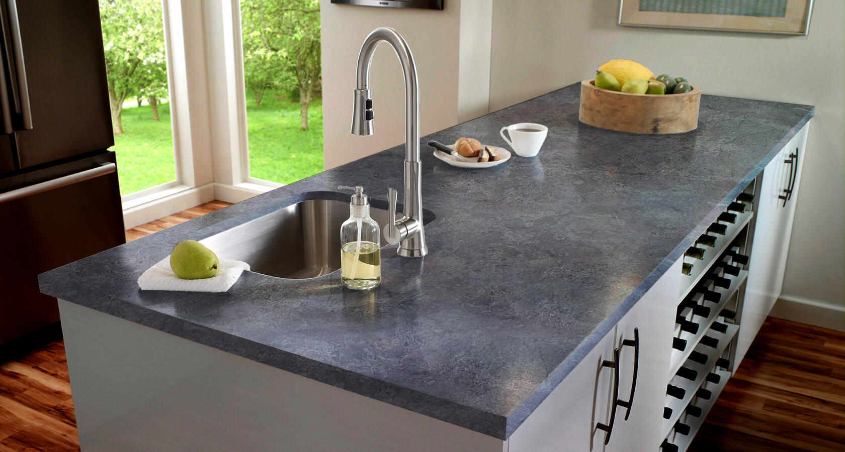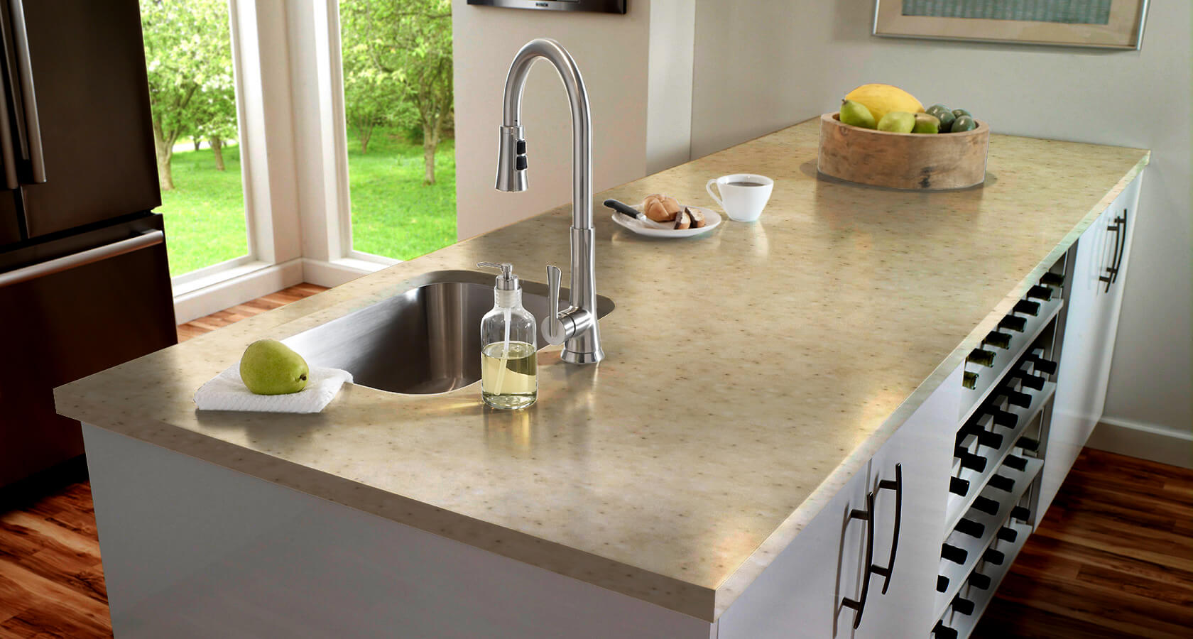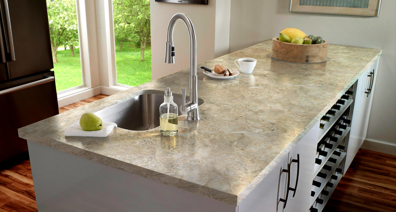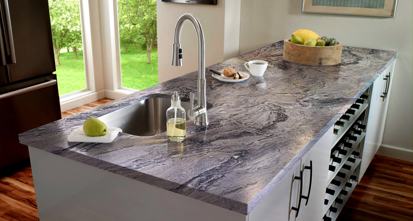 Коллекция материалов состоит из более 140 различных вариантов декоров, позволяя идеально подобрать столешницу под интерьер Вашей кухни.