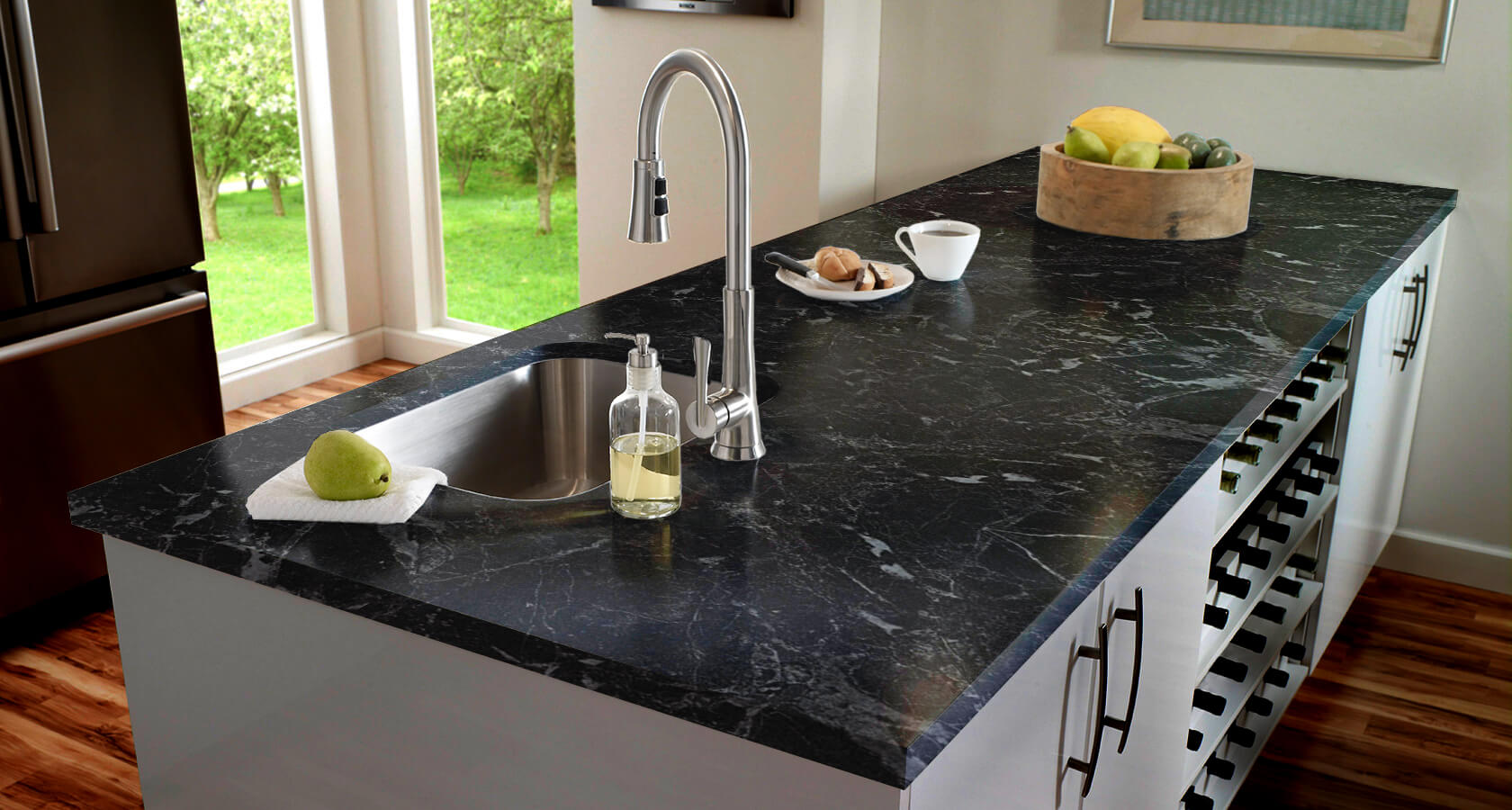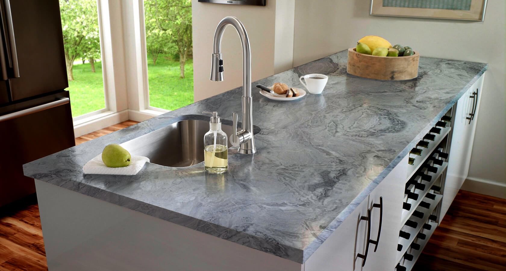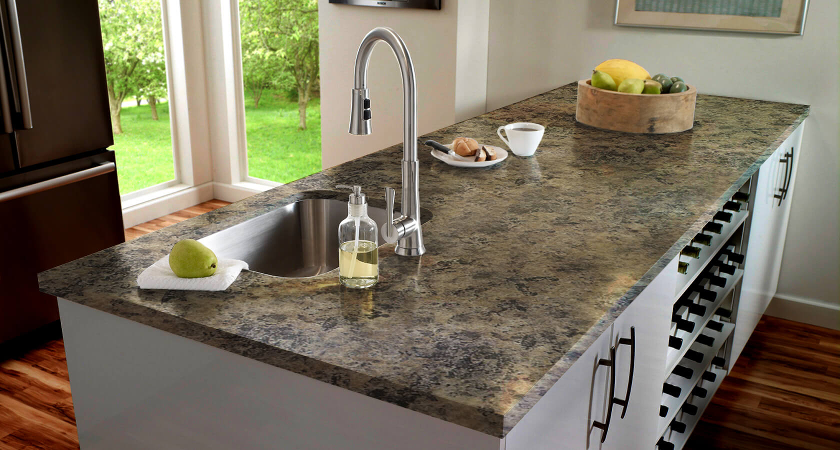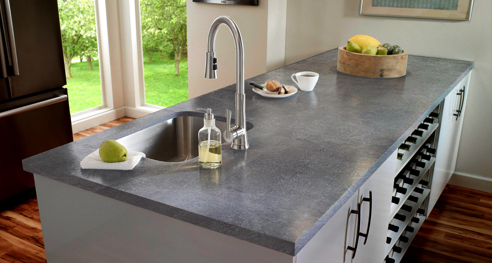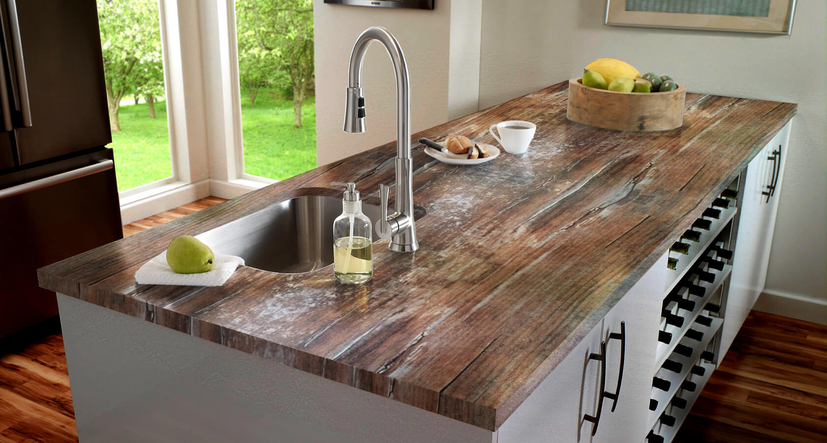 Коллекция материалов состоит из более 140 различных вариантов декоров, позволяя идеально подобрать столешницу под интерьер Вашей кухни.